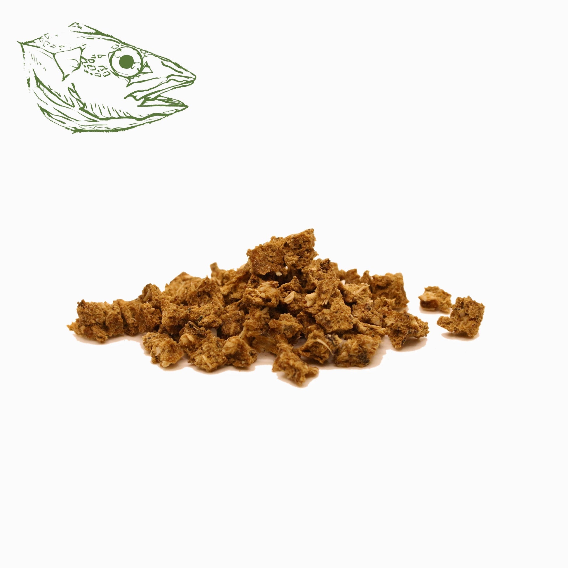 Unsere Dorschfleisch Miniwürfel bestehen aus reinem Dorschfleisch und eignen sich perfekt als Trainingssnack oder kleine Belohnung.