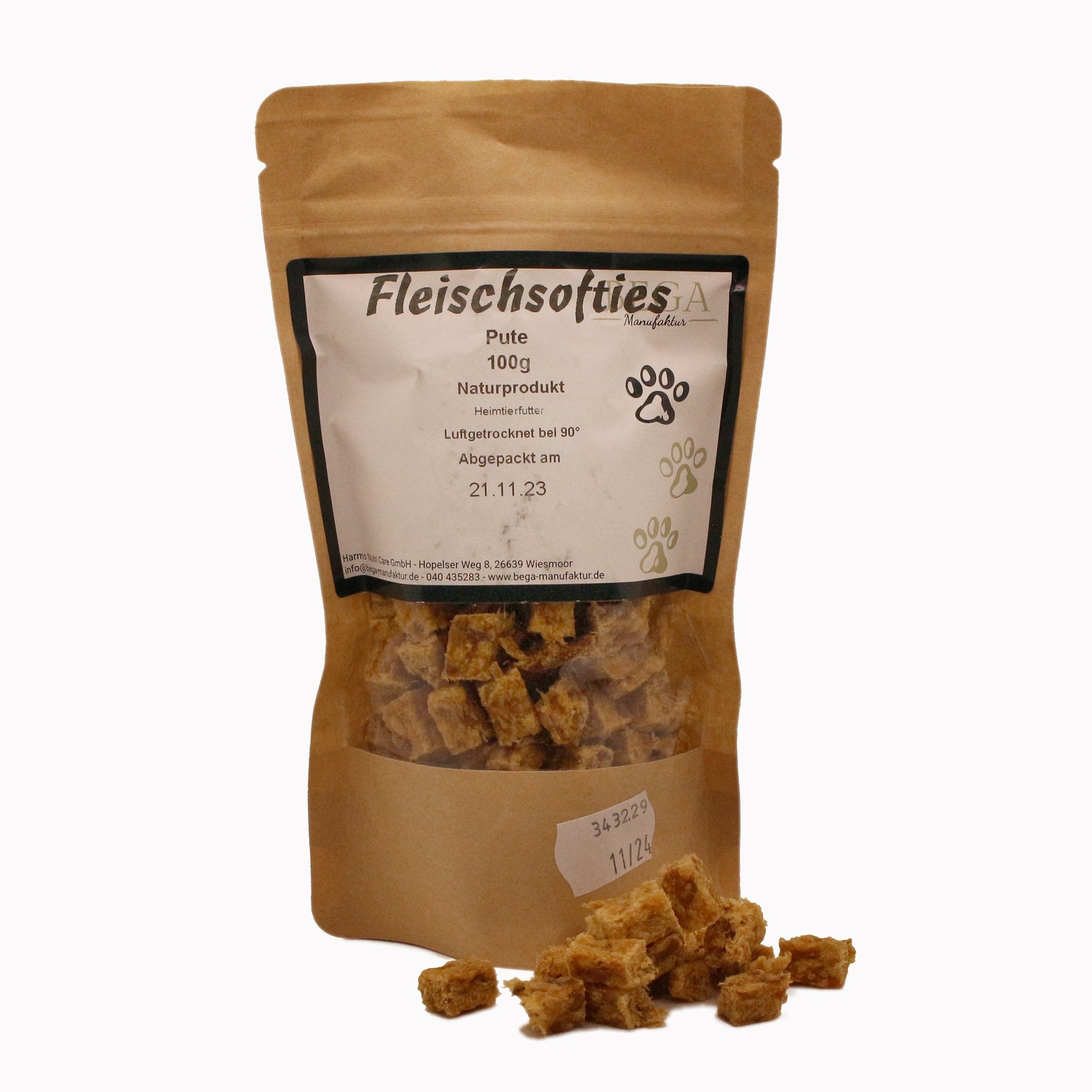 Unsere Putenfleisch Miniwürfel Soft sind weiche Snacks aus reinem Putenfleisch und ideal als Trainingssnack oder Belohnung für zwischendurch geeignet.