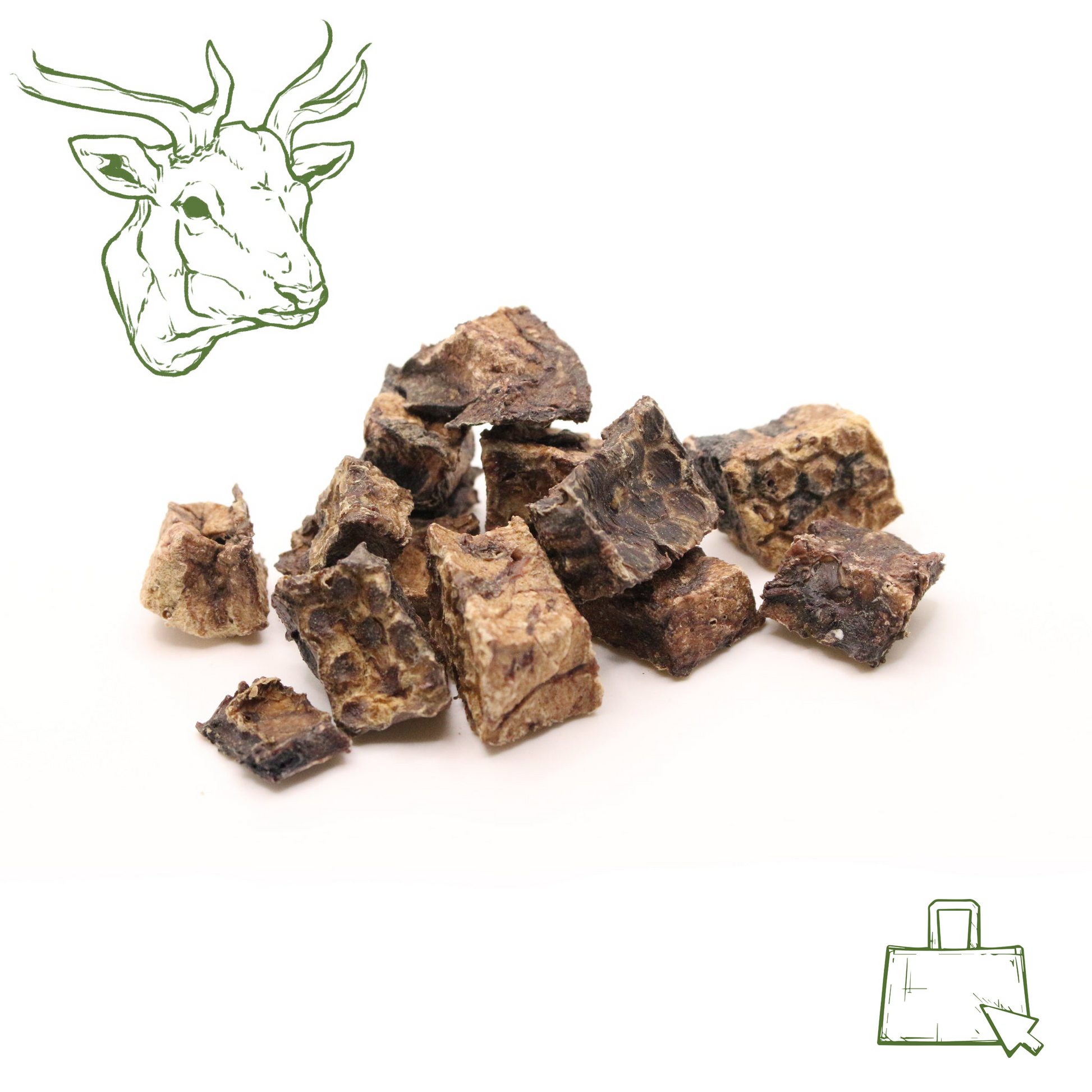 Unsere Hirschlungenwürfel sind handliche Snacks aus luftgetrockneter Hirschlunge. Sie lassen sich einfach dosieren und eignen sich ideal für unterwegs oder als Belohnung zwischendurch.
