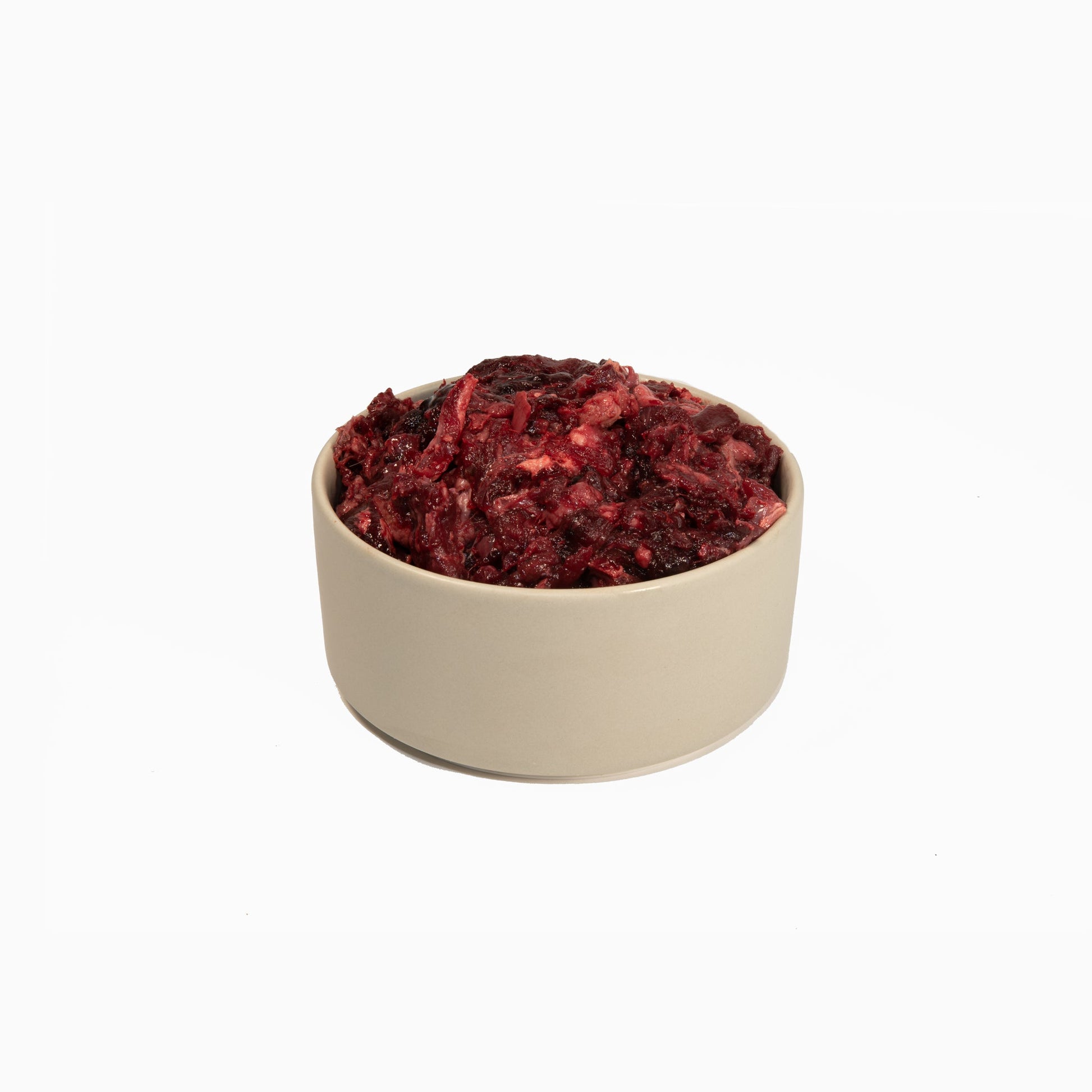 Muskelfleisch vom Reh und Hirsch, gewolft und tiefgekühlt – eine naturnahe Proteinquelle für Hunde, vor allem jene, die zu Futtermittelallergien neigen.