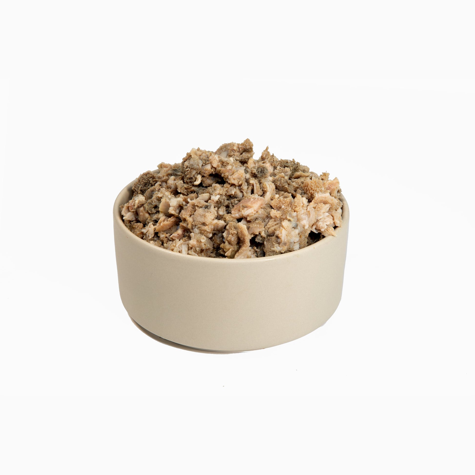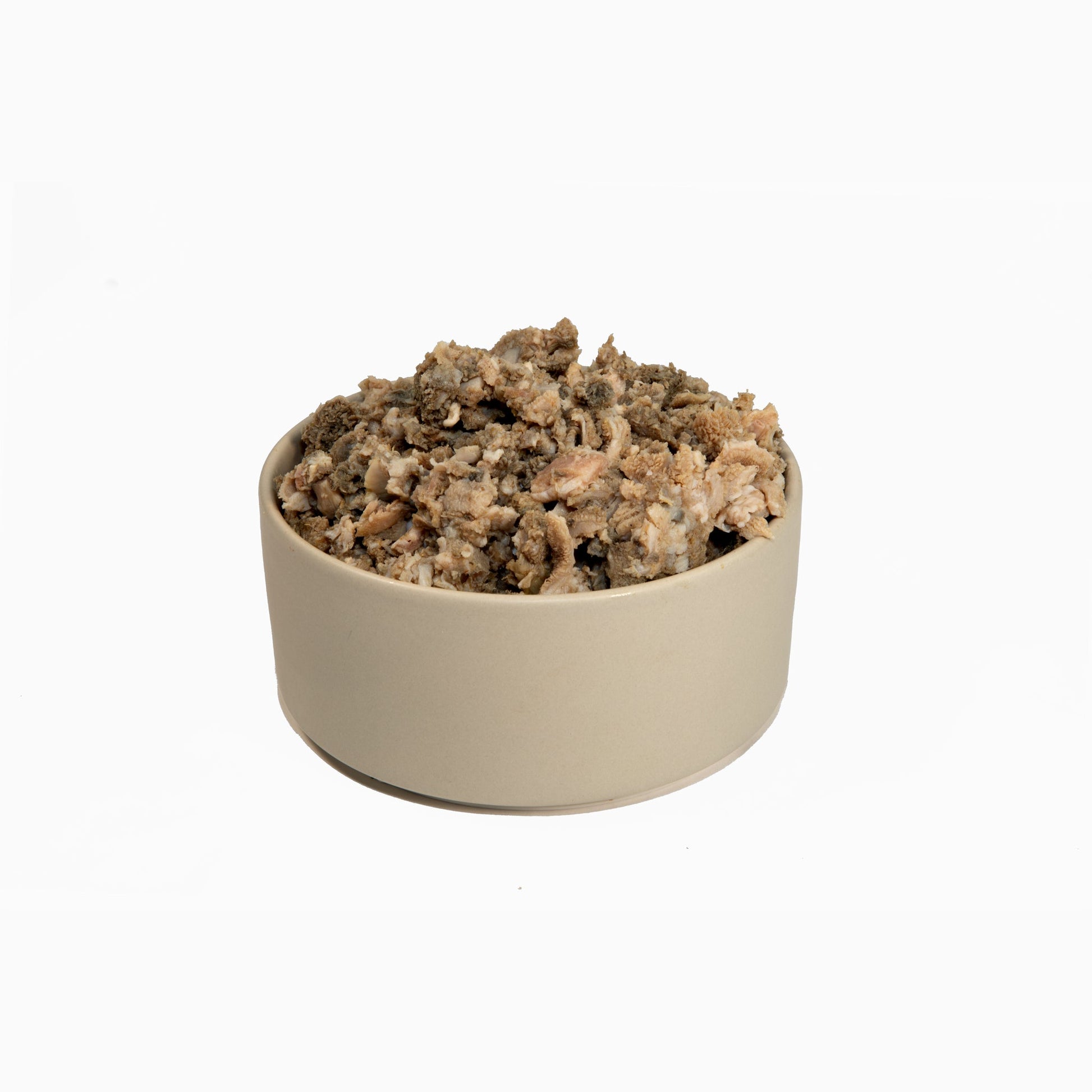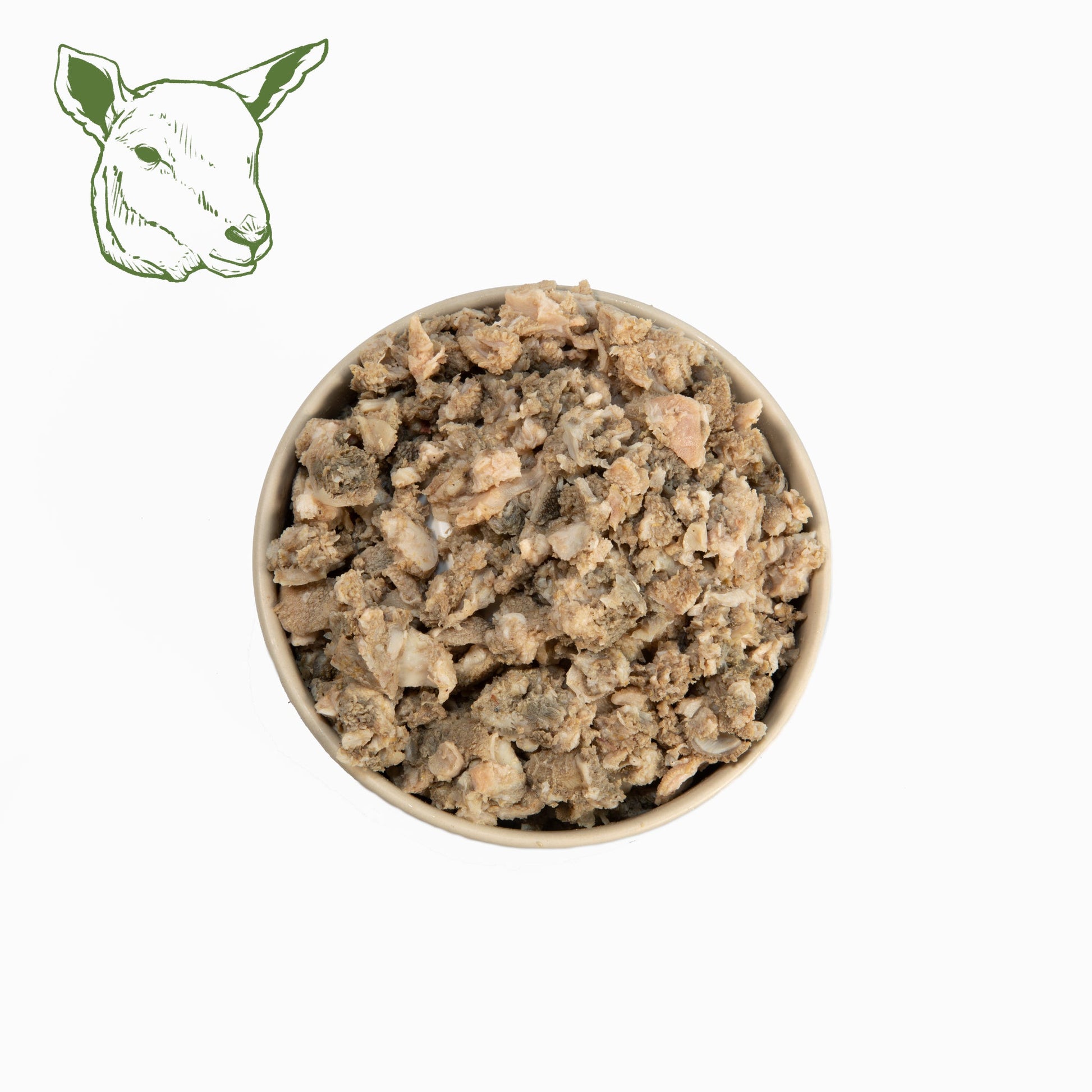 Schonend gekochter Lammpansen, grob gewolft und tiefgekühlt – eine schmackhafte Alternative für ernährungssensible Hunde.