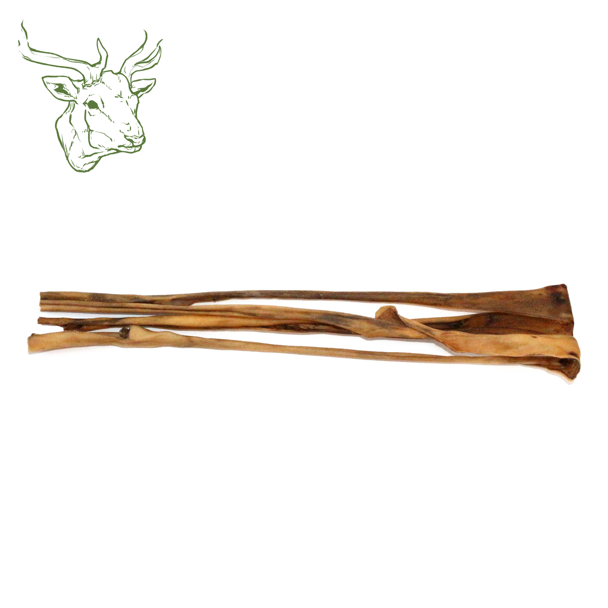 Unsere getrocknete Rehhaut ohne Fell ist ein besonders hochwertiger Kausnack für Hunde mit empfindlicher Verdauung oder bekannten Futtermittelallergien. Die entfellte Variante ist hygienisch, sauber und dennoch besonders zäh – ideal für mittelgroße bis große Hunde mit einem ausgeprägten Kaubedürfnis. Das feine Wildfleisch vom Reh ist fettarm, proteinreich und ausgesprochen schmackhaft.