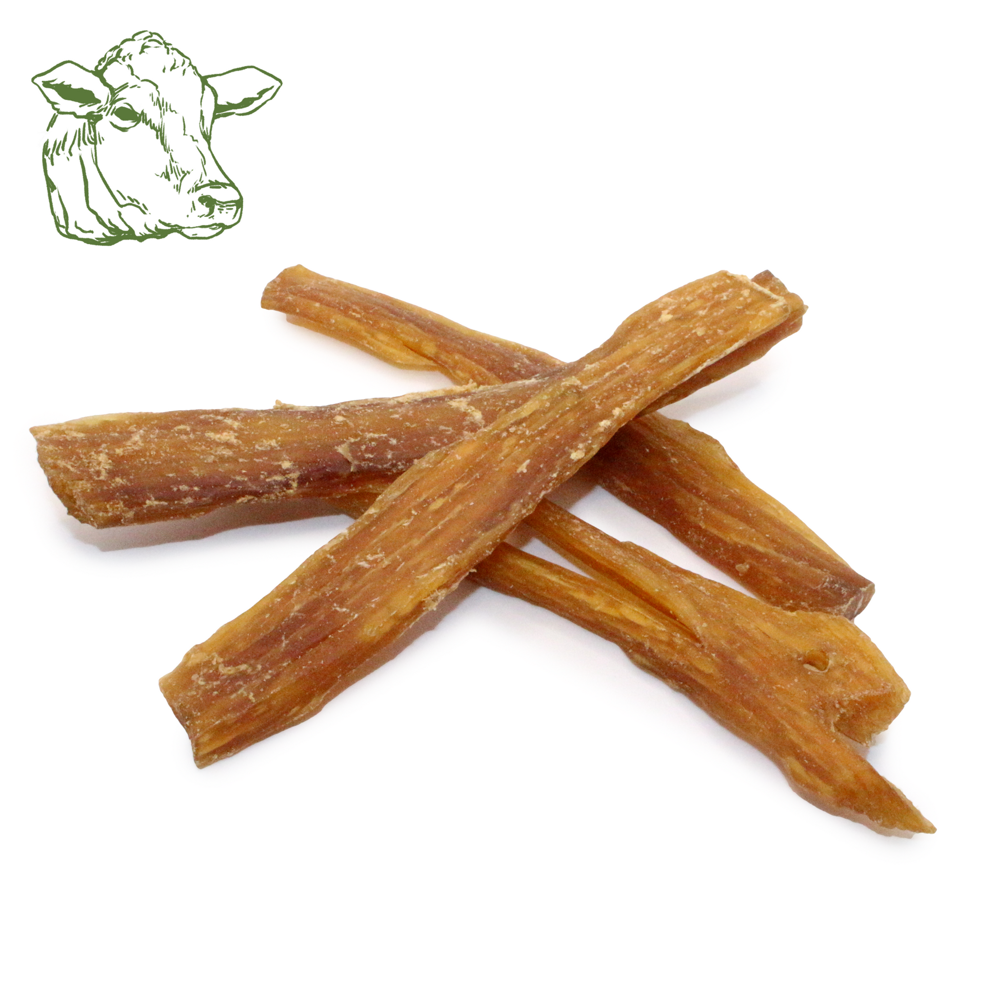 Unsere Rindernackensehne ist ein besonders zäher und langlebiger Kausnack für Hunde. Durch die feste Struktur wird die Kaumuskulatur gestärkt und die Zahnreinigung auf natürliche Weise unterstützt.