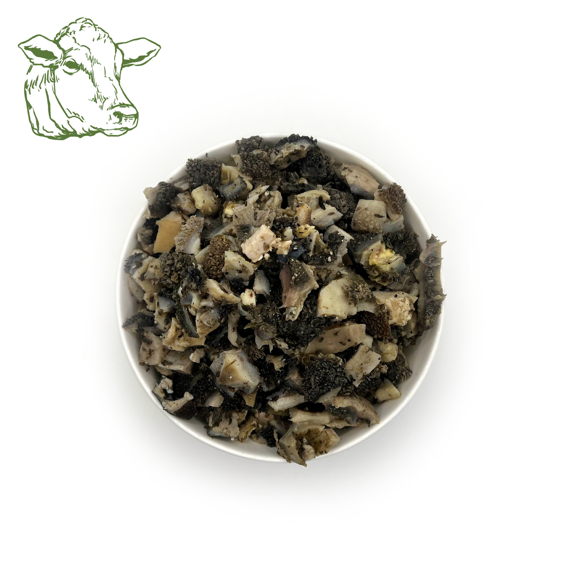 Rinderpansen, schonend gekocht, grob gewolft und tiefgekühlt – eine beliebte Wahl für die Fütterung.